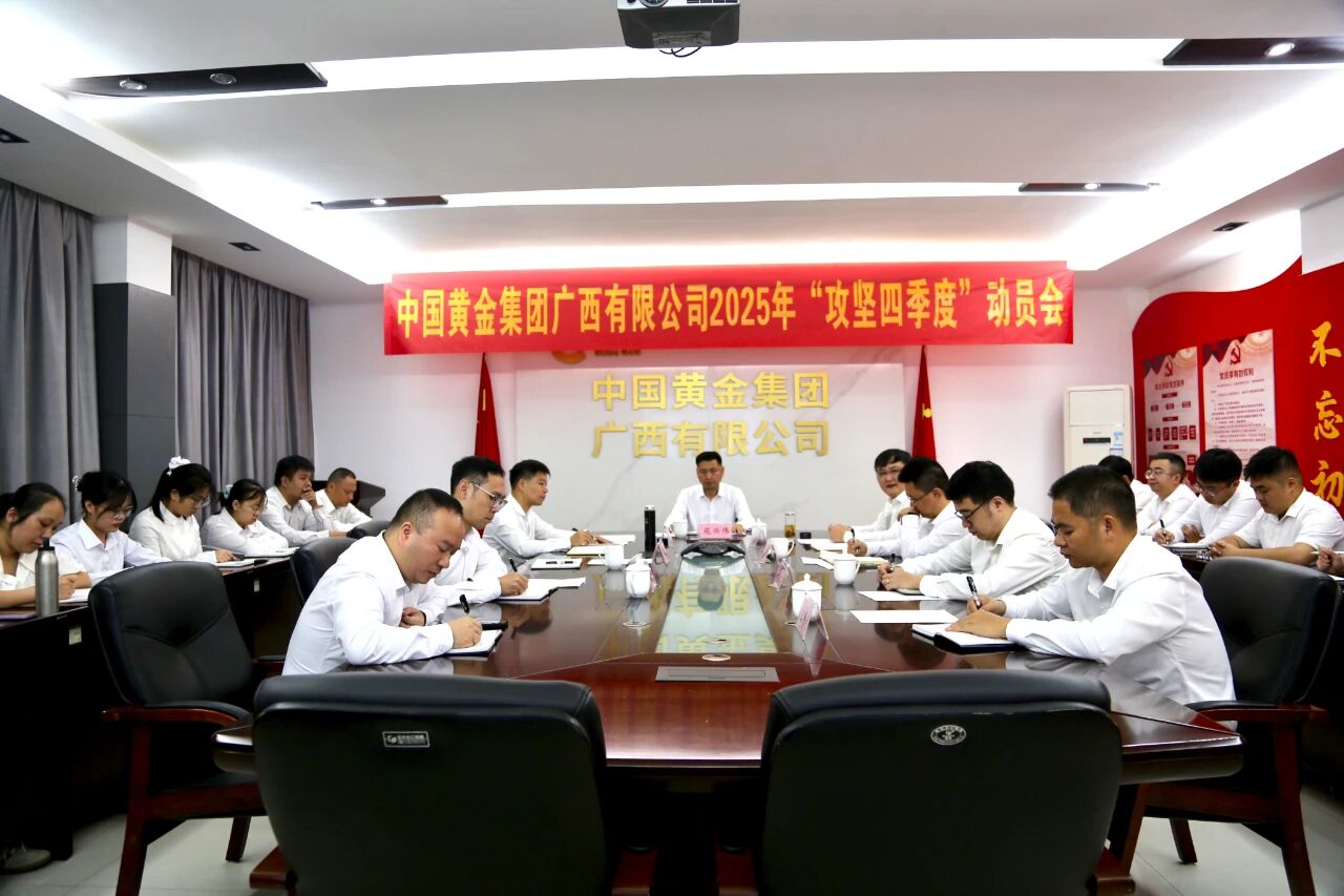 10 月 11 日,中国黄金集团广西有限公司召开2025年 “攻坚四季度” 动员会,会议由广西公司广西公司党委委员、纪委书记杨林主持。当前正值中央环保督察整改攻坚期、“十四五”规划收官冲刺期与“十五五”发展谋篇关键期,多重任务叠加、行业竞争加剧,此次会议旨在直面发展痛点、压实攻坚责任,为全年目标落地与未来发展破局定向。