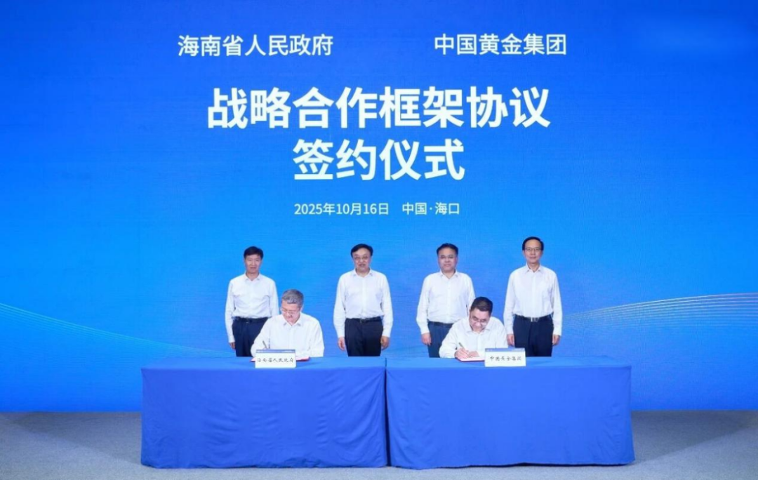 10月16日,集团公司与海南省政府战略合作框架协议签约仪式在海口市举行。冯飞、刘小明与周洲、殷长波共同见证签约,海南省副省长邹广、集团公司副总经理王佐满分别代表海南省政府和集团公司签约。根据协议,双方将深化黄金珠宝产业、进出口贸易、对外投资、跨境资金集中运营、辐照大健康产业发展等领域合作,助力海南建设具有世界影响力的中国特色自由贸易港,推动集团公司建设世界一流黄金产业科技领军企业,实现互利共赢发展。